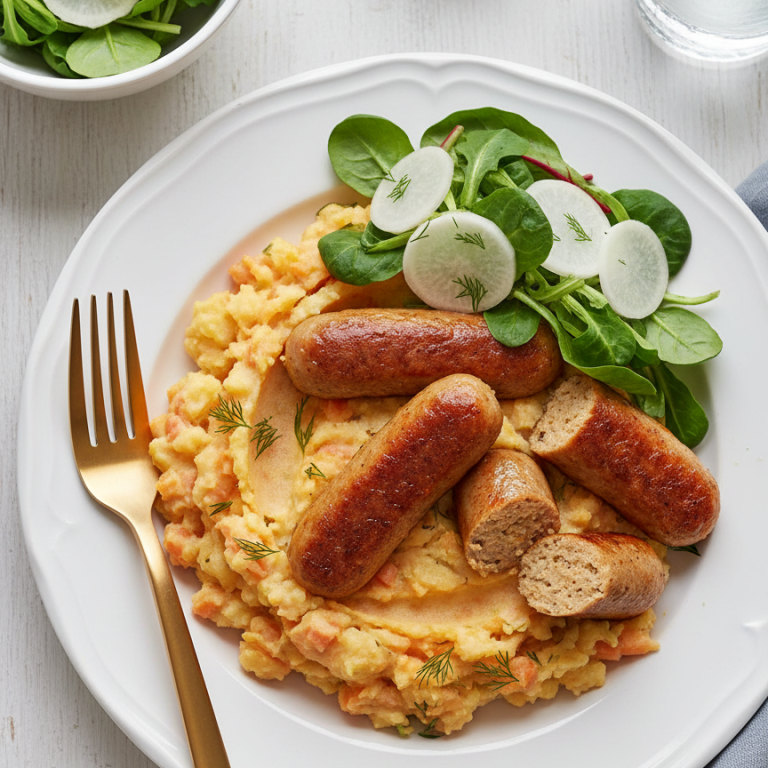 Vegokorv med Morots-Potatismos & Picklad Kålrabbi