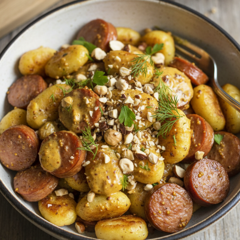 Gnocchipytta med Körv, Hasselnötter & Senapskräm